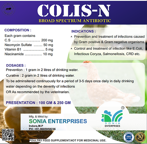 Control and treatment of infections like E.Coli, Infectious coyza, Salmonellosis, CRD etc.